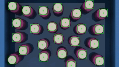 在傳送線的正上方安裝采集設(shè)備,裝有飲料瓶的包裝箱隨著傳送帶運動,采集設(shè)備對每個箱子拍照一次,采集到圖像并且對箱內(nèi)的飲料瓶進行計數(shù),如果合格則不做處理,不合格則發(fā)出報警。